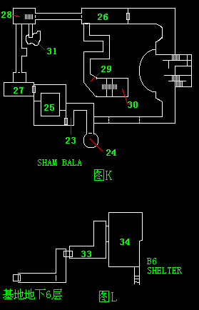 从☆向①—⑤前进⑥中可购买武器,在⑦处仪器调查,从左侧通道进入后上⑨处电梯来到地下2层,穿过⑩来到(11)有剧情回到地下1层的(12)有剧情,从垃圾道逃入地下3层,与BOSS交战(小心被它吞掉)将其打倒后,刚出门,敌人又从后方追来,不要回头跑向(13)会踏动机关,待可跑至(14)时将敌人引至,“!”号处,再踏动(14)处机关,可彻底将敌人消灭,出门时有剧情,再向前来到地下4层,走到(15)开动机关,密码“18”再开动(16)处机关密码“15”从(17)处回到地下3层,再(18)地点乘电梯来到地下2层,有剧情并得到磁卡。重新由⑩进入(11)穿过(19)来到(20)。在这里留言板上记载④中有“月刊”到④中取得“月刊”再回到(20)破译密码“A3EILM2S2Y”还要连续回答正确3道题(都与游戏有关)(先选第四项)之后电话铃响发生剧情后,前往地下一层的(21)在里面房间利用监控系统“OPERATE”(左下角)打开各处开关。从地下2层(22)下电梯来到“SHAMBALA”发生剧情,先到(23)处墙壁上记下图壁排列顺序再到(24)处将红色拼图把右上角和左下角和左下角相连,便可进入(25)消灭怪物(再打掉它周围的电场和生命装置)若装蓝色拼图按顺序横列在第一行或将黄色拼图顺序竖列在第一排会……。按原路返回前往(26)在(28)处记下:蓝6、白2、红3、黄5,在27处记下:“红黄蓝白蓝白红黄白蓝黄红”的顺序,来到(29)将钟盘位置拨正,在(30)按以上两种顺序分别输入,这之后再来到(27)从门中来到(25)的另一半房间杀死实验中的怪兽,再将(30)处神像开关扳动,便可进入湖心小岛(31)上的地道将里面怪物杀死后回到地下2层,从(32)电梯下去来到地下6层,目标是(33)途中有BOSS,在(33)中发生剧情进入(34)要在小女孩EVE被毒气杀死前带她离开。先对她对话她会拒绝离开,调查她面对的容器后,再与她对话,EVE就会跟着你走,距离不能与她太远,并且不可以跑动,慢慢将她带上电梯。电梯出口是(27)有剧情发生,在路径(28)与(26)之间时会听到EVE的叫声,并发生剧情,此时应一口气冲到地下1层的(35)内,沿途的敌人都变得非常难以对付,在“?”处调查得到“车钥匙”再调查发现一个机关,有4种颜色的按键,红=8绿=4篮=2黄=1,利用不同组合相加的结果对应键盘上发光的数字,可得到一部汽车和物品,将汽车移到图中圆型位置,在门旁的开关使用磁卡,打开门,然后上车来到基地地上,在(36)内打开机关进入(37)消灭敌人后可出门,有剧情,在(38)内可购买武器,与某人交谈也可获得武器。整备后,回到(35)有剧情,过后向(21)前进,发生剧情后要赶到地下2层的(39)内板EVE并与最终BOSS决战,带齐装备并存档。与BOSS交手时注意,多用防止异常状态的超能力,并不十分棘手,胜利后,找到闪红光的装置,并用磁卡启动,这时没有完全被消灭的BOSS会将EVE吸入体内,变动最形态,比较不容易对付。不过相信大家已有许多对敌经验了,所以不要贪多,与它周旋吧,最终BOSS终于被消灭了。过版后,可以存档重新进入游戏,莫非又有无数层的××××大楼?等大家自己去研究吧。