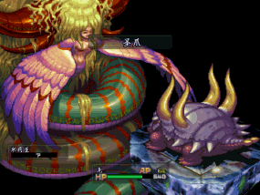 拿到LEVEL A的卡后便可进入A号门了,进入后会发现有许多门,而在门后等待的都是以前击败过的BOSS级首脑,这里虽然每一条路都通向最终决战,但是本人却希望大家能尽量把这里出现的敌人全部消灭,因为这不但可以得到大量经验值,而是还能得到一些怪物丢下的珍贵宝物。待准备完毕后众人通过一系列通道可以见到女神米丽亚,在米丽亚面前众人不断地向之提问,而问题的主要内容都是有关龙族被灭一事,最后女神米丽亚被众人问得不能自圆其说,还把众人用魔法弹开了,这时培洛克用神秘的力量把众人召了回来,而自己向女神提出了一个关键性的问题。女神最后问龙的意见,这时有两个选择,若选择一,龙就会与女神一起,世界也没有任何变化,直到永远--BAD END(如是这样那迪波就死得意无价值了)。若选择二,就会与女神作宿命的一战,她会变成一支巨大的恶魔,这时要选择能力较高的同伴上场。女神的HP很高而是其攻击形式多变,所以大家要在防具上作精心的布置,经过不懈的努力,终于将女神击败。
