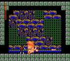 被旋风带过大山后会来到一个鬼城前(鬼城4),走进鬼城后一路向右走到如图19所示的地方,图中的石墙是假的可以跳过去,然后一路向右走,不久会来到放圆球的房间中,用铁钉把圆球打碎后会得到德拉克拉伯爵的爪。然后出鬼城,向左走会来到如图20所示的一个小湖前,把红水晶球装备上后,跪在小湖前的石块上(即按住方向下键不放),一会儿后画面会向下移动,小湖下面出现了一条楼梯,走下去后会来到一个山洞,向左跳过一块块上下移动的石块后会来到如图21所示的地方,用圣水瓶把石墙消掉后,与图中的商人交谈,他会送给你一件新武器--火炎鞭,然后向右跳过一块块上下移动的石块后,走到如图22所示的地方用圣水瓶消掉前面的石墙,然后向左走,从左下方出山洞,向左继续走途中要跳过一块块上下移动的石块,然后向左走会来到一个毒沼前,走过毒沼后会来到一个座鬼城前(鬼城5),走进鬼城。