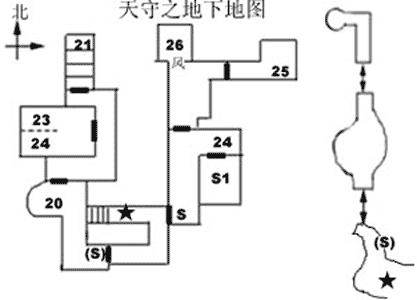 (自动来到⑧处),梦丸醒来后,对左马介的警惕已完全消失了,左马介也讲自己的经历给他听,梦丸从对话中明白人最宝贵的是自由,最重要的是希望。正在交谈时,一个妇人自称是佣人并说地下室有事发生,于是左马介把梦丸委托给枫和那个妇人,自己来到“Q”,救下一名士兵得到药草,进入“R”沿路来到⒆得到“蓝之书”,再利用三属不同属性的玉打开机关进入天守之地下地区。记录点旁有药草,⒇处可得到“碧之书”、“橙之书”和“白虎之书”,到(21)处取“净化钟”(之后自己小心了)(22)处拿到“天守之地下地图”后,回身一刀斩断绳索,将水排干,可到(23)处拿取“魂坛的念珠”(可与死人交谈),利用“净化钟”进入“S”。(24)处有“萤石”(25)处有“白之书”和药草,(26)处有“白虎之书”“幻魔默示录上”,按照“中、左、右”的顺序拿到“青丸之键”,仔细调查,还有一块“萤石”回到(24)处进房间“S1”,设想到中了藤吉郎的暗算,被困住了,听藤吉郎说暗黑仪式即将开始,信长将获得更大的力量,这该如何是好。与此同时,一个假左马介将枫打昏,与那个女人一起抓走了梦丸(以后万不可轻信“自称”是谁的人),左马介动弹不得,慢慢沉入了地下。枫苏亘这来,决心查个明白(终于可以控制她了),这个人物行动敏捷,但轻盈有余,力量不足,建议学习生化危机,不要与敌人交手,走为上策。从⑧出门来到“H”,垂死的士兵告诉枫,西边牢房有敌人出现,“赤丸之键”入手。回到南天地区打开“E”处旁边的门进入“西天地区”一直来到(27)(沿途有药草)救下一名士兵后得到“吸阵符”,(28)处有“西天之地图”、“T”处拉动机关,15秒内进入(29)(否则机关自动复元)得到“金的割符”和药草,拉动屋内开关,回到(27)向西进入(30)记录点旁的宝箱必须在此时打开,因为左马介无法通过,只有枫才能进入。(笔者以慈悲为怀,再透露一次答案,从左至右,2、4、7即可得到“鬼石”,下不为例)向里走,尸体旁有“齿车”,回到(31)屋内可得“朱雀之书”和药草,“最妙之书五卷”,将“齿车”安放在书架的机关上打开暗门得到“银的割符”、“白虎之书”和“萤石”。这样,(30)旁边的门可利用“左金”“右银”进入。来到(32)按照“中、左、左、右、右”打开宝箱得到枫专用武器“反鬼小太刀”,下楼梯后,旁边有“萤石”,再前往(33)(小心火焰)得到“玄武之书”和“飞镖”后,从“U”处下楼,走到尽头“V”处发现牢中的雪姬,枫急忙帮助雪姬开锁,这时,幻魔王出现,再次劫走了雪姬,而枫要与BOSS——隐身人交战,这个BOSS其实是后期常见的敌人,在这里先预习一下也好,极为容易,战胜后,枫感到十分不可思议,但不得不面对现实,便马上又投入到搜索中去了。