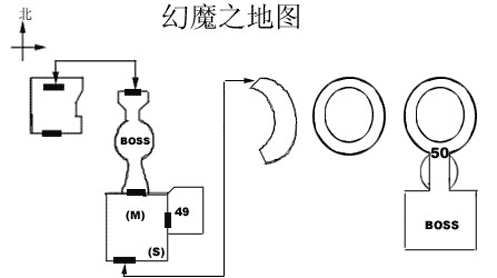 枫望着湖水思索如何打破结界,水面一阵晃动并跳出两只幻魔蚁赶快进入(41)、(42)内有“萤石”、“药草”“幻魔默示录下”,然后来到(39)进入左马介无法打开的门,先到(43)取“定角之矢”(44)处上楼取“萤石”和“玄武之书”(45)处的“药草”和“朱雀之书”以及“萤石”,上楼按照“左、左、中、右、右、中、中”打开宝箱得“镝矢”,再到(46)处神像背后以假换真得到“破魔矢”(熟悉的场面)神像面前宝箱内有“绿丸之键”。打开(37)处的门,在尽头处乘船来到(40)。枫从门外见到左马介被围困,并发现旁边的船上有火药,顿时心生一计。