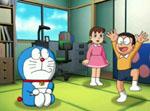 “ヒントを あげる” / / (在门外与康夫对话后,除了可以使用随意门(どこでもドア)返回家中之外,也可以移动到其他地方,然后折返回家) |