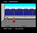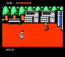 我们的主角国夫(1P)和阿力(2P)在一开始接到了一所学校中的流氓的挑战,在每个新到的场景中要把所有敌人都消灭光,这样Boss才会出现, 一直前进到如图1所示的地方,打完街上的敌人后,走过图中上方的门中,在里面把敌人消灭完后出来,继续前进,来到如图2所示的地方,打完街上的敌人后,第一个Boss就会出现,干掉他后继续前进来到桥上如图3所示,这时会发生剧情,等小女孩说完话后,在图中主角国夫站的地方向上走,进入后来到如图4所示的地方,把里面的两个Boss干掉后,继续前进,来到如图5所示的地方,要先把两边出现的敌人打光,Boss才会出现,打死他后,继续前进,来到地下隧道,在如图6所示的地方中有一扇暗门,进入后会有很多好东东卖噢,记得在前面集多点钱在这儿买东西呀。