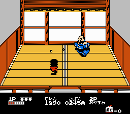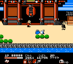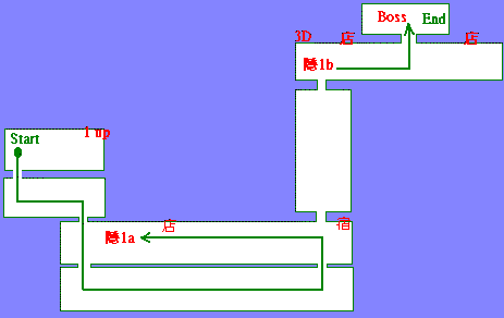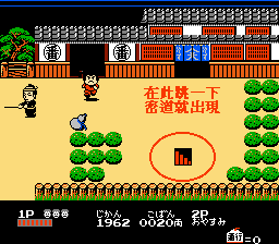 攻略流程 : 如上图所示 ,1 up 随您高兴拿不拿,此关头目为压榨百姓之店家老板,他的秘密武器为一机器人,将他打倒轻而易举,当打倒时像狗一样跪地求饶,五佐卫门 ! 喔不! Scott Wu 您真是英雄啊……^o^!