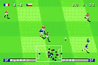地面球:B键,长传过顶:BB连打(第二下蓄力),THROUGH:A+B, 射门:A键(方向键左右控制弧度,上下控制速度)。