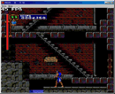 经过这7关的苦战,在走上了长长的楼梯后,在如图8-1所示的地方处向上跳后按住方向键上不放,即可走上无形的楼梯(这条楼梯在PS或SS版的恶魔城-月下夜想曲中也有,不过要打中墙壁上的开关,PCE版就不用打开关。),然后从图8-2所示的地方处向下走下来,终于到了和Dracula伯爵决战的时候了,Dracula伯爵会变一次身,不过到了这里你应该可以应付了。好了可以看结局画面了,拿杯茶边喝边看吧,如果你是以100%的完成度打通关的话,那你就会看到一个不同的结局画面了。