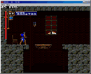 从分支4的路线进入第三关,要从分支4进入第三关,你要选用Maria来闯关才能进入这一关,在图3-4中Maria所站的地方处把Maria前面的石碑向左推一段距离后,你会发觉Maria在往下沉,等Maria完全沉下去后会来到一个房间中,里面有1UP和一些宝物,吃完后从下面的出口出去,继续前进会遇到一个鬼头,打掉它的三只眼就可以打死它。继续前进到如图3-5所示的地方,打碎门下面的石块后进去,不要从图中上面的门进去,来到如图3-6所示的地方,走下图中的楼梯后会来到一个房间,里面有一位修女,走过去和她说话后就可以把她救出来,会回到图3-6所示的地方,继续向右边走到如图3-7所示的地方出现分支路线,分支6.如果你从图3-7中的空隙跳下去的话,就会进入分支6和第三关的Boss(大眼怪)相遇。如果你在图3-7所示的地方走上楼梯的话,前进一段路后你会和分支5的第三关Boss(牛头怪)相遇。