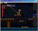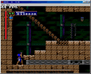 不论上一关你走哪条路线,第六关都是一样的,只不过本关的名字有所不同。本关一开始你就要做好准务,因为前面的石桥会在你走上去后,开始崩塌,你要一直向前走,途中有一群蝙蝠来阻碍你的前进,对在正面挡路的要先打死,从背后来的就尽量不要去理它们,不然会从崩塌的石桥上掉下去的,过了石桥后会来到计时塔,这里面全是齿轮,来到如图7-1所示的地方,跳起来打图中右上方的齿轮,直到把它打下来,这时图中右方的门会打开,进去后要和一只老鹰开战,打死它后老鹰脖子上的钥匙就会掉下来,把钥匙拿起来,打掉老鹰的巢会有食物。出去后继续前进,走到如图7-2的地方,用刚才那把钥匙把左边的门打开后进去,在里面会救出女主角。然后继续前进,一路上按照背景后面的铜像的手指的方向前进。在本关最后会和Stage 6也就是上一关的Boss(暗黑大神官的鬼魂)再打一战,相信到了这里你应该可以再次把它打败吧。