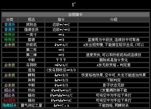 《KOF2002》全出招表(1)