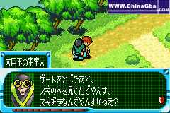 自称大目玉的宇宙人——||| “在门边上的树那里有点东西......”虽然不知道他说什么,我还是在开关边的树那里找到了道具终于门开了。在桥头,他叫住了我们,他也加入了队伍,大目玉拥有回复体力的能力,一直走到山顶,又遇见了黑衣人。他们边上还有一个浑身发红的怪物,战胜他之后,他也加入了。