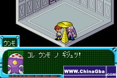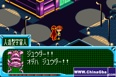 ——一路追过去,一个N只眼睛的家伙挡住了我“莫非你就是传说中的宇宙人?”“喀喀,去死吧”3,2下搞定他,在边上检起光球,在调查他的身体,宇宙人就被我救起了。原来他是WANMO星人,对话后得到和WANMO星人交谈的能力,同时宇宙人加入队伍~YEAH,正要出去,又有2个黑衣人冲了出来,还说刚才是一个人,现在有2个人就不同了......我们2人,哦不,是一人一宇宙人合作很快搞定(WANMO按A和B也有同样效果)WANMO还告诉你改造的方法(我就不赘述了),走到桥边,发现一个把手,我试着板了板,谁知道竟然会弹起来?!一回头发现身后来了一个,穿着怪异服装的家伙,上前对话,原来是个大八力“......