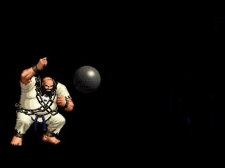 (近身→↘↓↙←→↘↓↙←p/P) 威力很大的指令投,特别是MAX版的威力BT不说,还附加弹性效果?