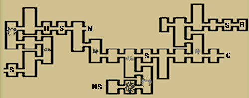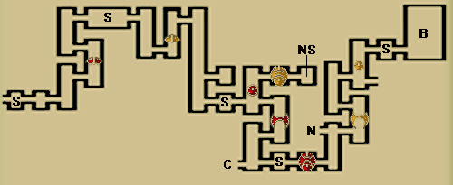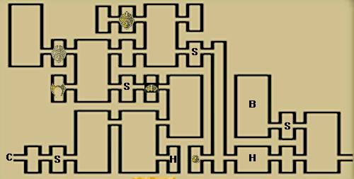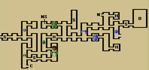 地图标注: H-加血房间,S-存盘点,B-BOSS,C-CENTER,N-NGC才可进入的房间,NS-NGC SWITCH