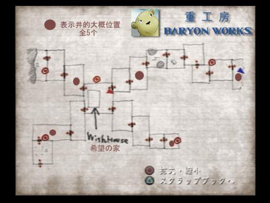 这个有着4S之名的地方让我觉得很不舒服。而且这次又有得转了~还好地图都画完了的。(墓碑上的字艾琳MM可以读懂)走到地图中间的希望の家记得用传送点传送回家一下,家门口有东西。回到希望の家的空地上,那儿有MM的专用武器。接着来到トルーカ湖会有一个情节,然后在女神像那得到一个纹章。在被烧毁的希望之家那里有一个木偶记得去调查,你要把它掉的手脚啊什么的找回来~。 然后来到墓地有火台的地方可以到一个武器叫たぃまっ,拿到后回家先,在储屋室不是有灯油吗?让这东西沾点油(对着灯油使用它)。返回希望の家后装备刚刚沾了灯油的たぃまっ。调查墓地的火台,就可以点燃它。那,现在就去调查那些原来因太黑而看不到里面的水井。里面就是我们要找的东西了。(在路上又会遇到老熟人哦!还有火把用久了还是会灭的)拿全后来到希望之家给他安上,他就会让开~发现在它下面有一个洞~新大陆发现!走~~~~~~~~~`下去后在桌上拿到一本叫:圣母降临的21谜踪,然后在门边使用在女神像那里拿到的纹章。又是螺旋楼梯~我快不行了~都要吐了井的所处版面(不是具体位置)请参看下面的地图。
