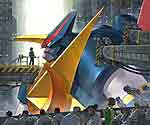 超时空要塞Macross企划者 河森正治,要让梦幻般的异种机器人格斗能在dc游戏机上彻底实现,不论超级机器人、变形机器人还是合体机器人,都能享受到自由自在乱斗快感,这款3D对战格斗游戏 超钢战记 即因应而生。