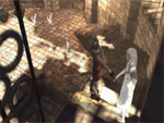 游戏性本身感觉就象一款3D更新版,就象塞尔达地牢中的波斯王子,周围的环境分外平静。在整个游戏中,Ico不仅能够吹出尖锐的口哨声,还会飞檐走壁,紧贴着墙壁沿着悬崖峭壁能够自由的活动。另外还会推动箱子,高空跳跃深坑,爬竹竿,攀锁链等。整个城堡本身是一个巨大的迷宫,里面危机四伏,玩家必须高度警惕。如果不小心你会随时悬挂在各种深坑里,也就是说每走一步都需要提前做出一个明智的决定。当然了,你也将会把Yorda带在身后,随时做好遇到劲敌逃跑的准备。因为她的身体比较虚弱,最好是锻炼她进行难度较低的跳跃或者攀登梯子的能力。更多的时候,你会用手拉着她前进,或者爬高的时候帮助她向上爬。游戏中的许多谜题是帮助Yorda通过城堡顺利的前进。不过游戏玩起来很灵活,不象《Knuckles Chaotix》或者《The Lost Vikings》,感觉是一种负担。在冒险过程中,你将会尽最大努力关心她,但是她并不会给你拉后腿,配合很积极。比方说Ico遇上可怕的魔法攻击时,聪明的Yorda会为你想出解决的方法来。如果你轻易离开了她居住的房间,或者让她单独一个人生活太久,危难就会降临在她的头上。这样一来,你不得不冒更大的危险去救她了。