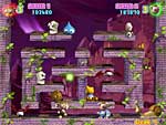红色药水可以用来提升攻击威力,黄色药水可以加快角色的速度,紫色药水可使攻击的距离变远,还有吃到后能三次不死的无敌宝石以及各种加分的水果,若玩家的分数能持续累积上去,到了一定的程度就会增加只数。