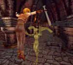 对于一款动作冒险游戏来说,最吸引玩家的还是内容的新颖,玩家总是能克服任何出现在游戏中的困难。故事跟随Linda横过五个不同的世界并随着地带的转变和情景的变化来逐渐完成游戏中的30项使命,而和Llinda相反的敌人是一些游牧部落丑恶的怪物。游戏里常常会有一些奇怪的声音让你感到毛骨悚然,这个声音真的设计的很好,很具讽刺性。在某个意义上说,游戏的目的就是要在游戏里面找到合适的钥匙来开相应的门。在某些环境中,也会有惊险的场面,一些吸血鬼会向你走近,游戏的音乐也会随之渐渐加强,其他的小鬼也会出现,而那只大吸血鬼就会变成一只有长牙的凶残的怪物。继续玩下去,玩家会惊叹于游戏设计者的创意。玩家在路上会碰到50多种从没见过的怪兽。甚至在游戏中主人公将面对不只是单单一个对手,有时需要接受不同大量的敌人或一些想象不到的魔法和咒语。随着序幕的拉开而游戏难度也会有一定的提高,相信只有在高难度中体验游戏才是玩家的最终享受。另外游戏中还有几位特殊的人物“Draak”“Gannish”“Dorian”相信只有你才知道他们是用来干什么的……