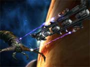 宇宙当然是浩翰无边的,但在《Earth and Beyond》中,玩家并不需要花费数月时间精心策划,并投入数百万美元,便能够遨游它黑暗的延伸。在创造出自己的人物后,玩家将获得一艘飞船,伴随你度过整个游戏。正如Stojsavljevic形容的那样,这艘飞船就是玩家人物在游戏中的具体表现。除非你在游戏休息室中闲逛,否则此款游戏的玩家将“认船不认人”,只会根据飞船认出你,而飞船也是你在《Earth and Beyond》游戏世界中四处周游的唯一方式。每个服务器都将被划分为100个分区,这等同于《永攀高峰》(EverQuest)中的地带(zones)。用“巨大”一词描述这些分区都将是言之过轻。在每个分区内部,玩家的飞船都能够以正常漫游速度或扭曲速度飞行。二者区别何在?从分区的一端飞到另一端,采用“扭曲”飞行只需短短五分钟时间,而要巡游同样的距离则要耗费一个半小时(玩家可以利用散布于整个游戏中的“星际之门”跃入另一个分区)。此外,《Earth and Beyond》中还遍布着大量的行星和太空站,所有这些玩家都可以纵情飞越穿行,而到那时你将开始欣赏这款游戏宏大的规模。