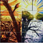 右侧第一洞,沙漠环境(代表秋天),暂时不能解。左侧第二洞是怪物,随着谜题的解开会慢慢下降。右侧第三洞冰山(代表冬天),进入后,左边是水池,先到右边爬上去,用神矛指冰山,火鸟融化所有的冰,尸体沉入水中,到尸体放置处捡枯木,出去,前进到右侧第四洞,山崖(代表春天),大圆板上面绑了一个尸体,圆板右边地上有一朵花,捡起来。圆板下方,尸体胯下的部份,打开放上人偶(自齐格蒙取得),将人偶腹部金属块放到左下方形状符合处,其它膝甲(右下)、左右臂甲(左右中)、面具(左上)、头(右上)、心放最上方,圆板上升,出现一石盘,将头放X=4、Y=1,右手X=1、Y=2,左手X=7、Y=2,右脚X=7、Y=3,左脚X=7、Y=5,身体正中X=Y=4,排成一人型,最后的心当然在身体的相对位置X=5、Y=3,接着火鸟抓走尸体,掉了一根羽毛,取得羽毛,出洞,前进到第五洞,一片茂林(夏天),前进一步,看到一个死人挂在树上,地上有个坑,想必是要你帮它入土,坑旁有龙剑,拿着,尸体树后有四根木雕,由左至右为生、幼、壮、老,左手边有个苹果树,树下有苹果一颗,捡起来,出洞回头到第三洞(冰),进有水池的山洞,把神矛指向那水龙头,水就会灌满水池,接着用龙剑插水龙头,水池中间的海螺就可以拿起来,记得拔剑,出去,回头到第一洞(沙漠),尸体被四条绳索栓住的乌云盖着,用龙剑砍断比较远的那条绳子,接着拿海螺把乌云吹走,把火鸟叫来烧尸体,得到落叶。出洞,再前进到第五洞(树林),把收集到的花、苹果、落叶、枯木,分别放在生、幼、壮、老四根木雕上,死人就入土了,并取得绳子(73%)。出去,到最后一道金门,打开后有一堆金光闪闪的东东,把右下角的三角形拿起,放到左边的三角框,再拿圆形填住中空的三角形,再把六角形放到六角框,再把填好的三角形搬到六角形中,赶快倒转沙漏,门就会开启(86%)。进入后,看到一个大槽,里面的人不断的生长老去,槽下方有机关,有颗小球一直跑,按上下共四个小按钮(上有小三角形的),球会停,槽中的人也停止变化。右边墙上有三个图像,各有一个绞轮,把绳子从左边挂上去,听到一些秘密,布琳希德自己就是那位以爱情为名的复仇者(齐格飞的故事,诸神的黄昏),回到天庭接受处罚(100%)。