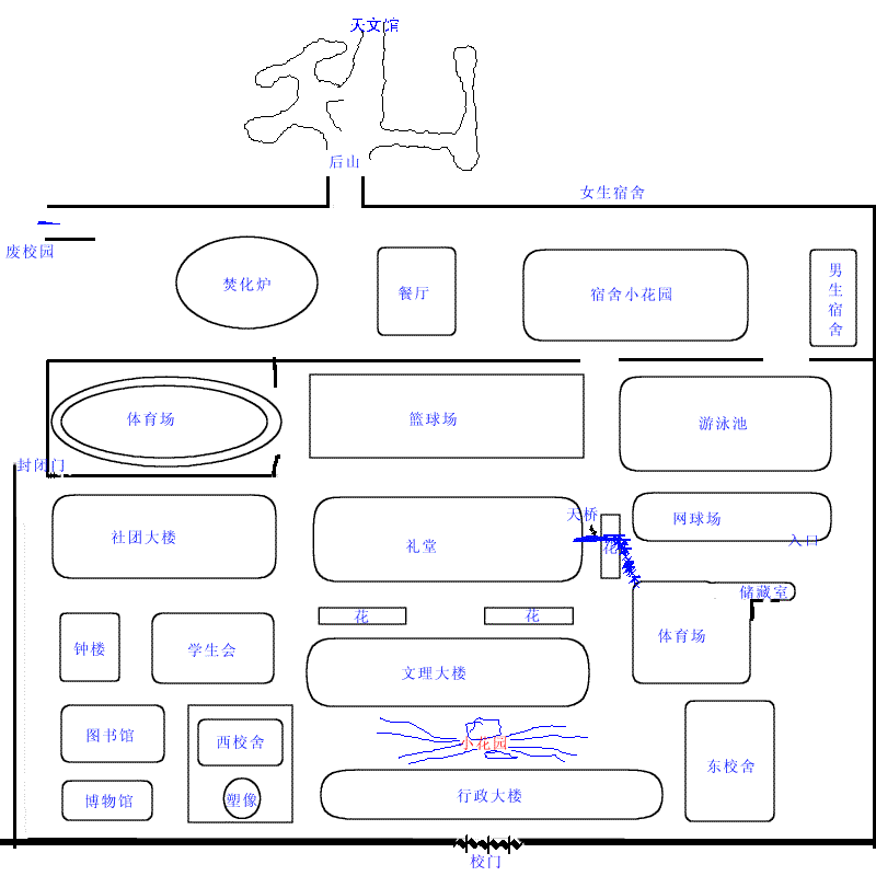草草的画了一张校园图一并放在这个包里了,大家可以看看!我想其他的迷宫都不