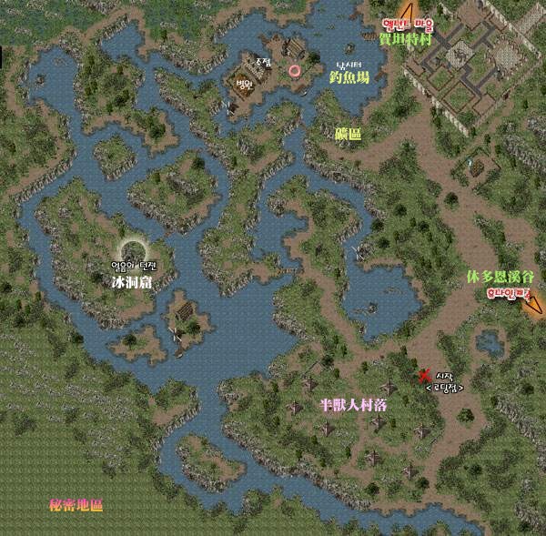 休多恩河(SOURCE) 这里有冰洞窟,也有半兽人村庄,此地图都是野猪跟半兽人。