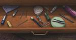 至于布莱蒂和西蒙的关系如何,那还得看一看布莱蒂的剧本。在他的化妆台下有一个被锁住的抽屉,南茜用在西蒙的化妆台中得到的一个发卡将他打开。在抽屉里,她找到一本控制舞台升降梯的说明书,并因此发现了剧院的另一个密道。