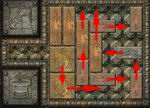 在剧院的后台,南茜发现了一个地道的入口。进入之前,先要放下绳索,钩住压在地面上的那个木箱。再回到木箱旁边,固定住绳索。然后,再用绳索将木箱吊起。这样才可以安全进入。(否则,地板会因无法承受木箱的重量而坍塌,南茜也会摔死)