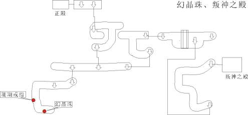 以下是《圣女之歌》神殿的简易地图,包括迷晶珠、梦晶珠、幻晶珠和叛神之殿的位置。