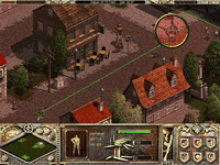 流程:本关需要用到兵种的特殊能力。过程比较简单但是也很困难,由于主要任务是摧毁中央地带的建筑并杀死敌军军官,所以在本关中有大量的敌军在防御。能不能闯过敌军密集的防御工事是关键。任务开始后从地区西面出发开始向中央地带突进。途中有大量的敌军以及碉堡之类的设施,让喷火兵和炮兵集中力量轰炸碉堡,其余的兵力就攻击游散的士兵。这时需要玩家在微控制上下点功夫,以手上的兵力要将全部的敌军消灭是不可能的,留一部分兵力吸引敌人的攻击力,让另一部分队伍直接集结后冲刺,冲刺的过程中保护兵种TOUNGH是最重要的。敌军的公馆在中央地带,位置比较明显。冲进中央地带后,先炸掉停放的几辆汽车,同时让兵种TOUNGH在中央公馆(右边的房子)门前安放定时炸弹,炸掉公馆后(炸的同时实际上也已经把敌军在里面的军官给炸死了)即可过关。