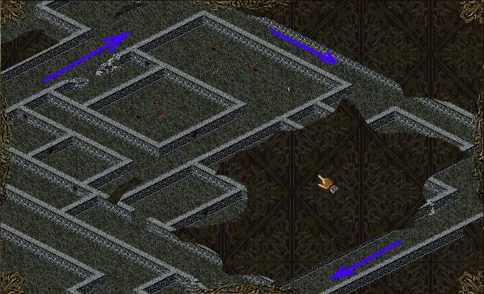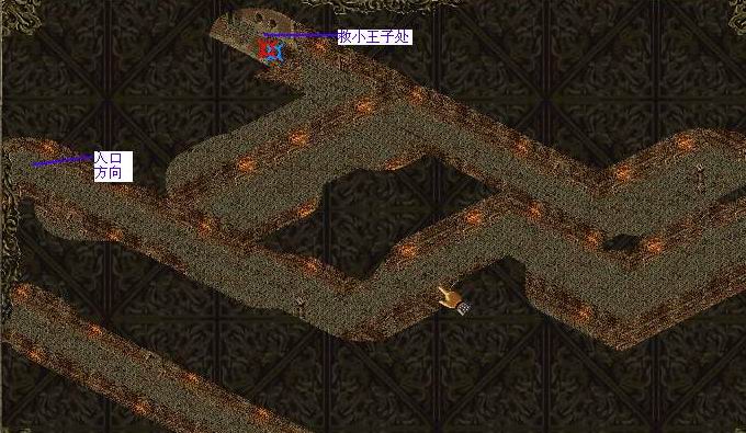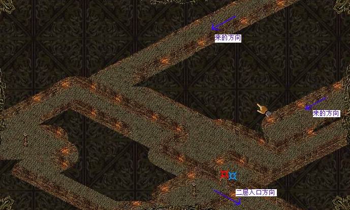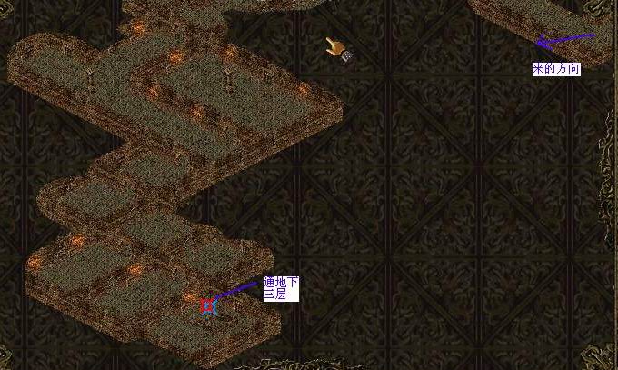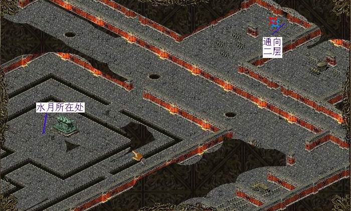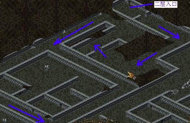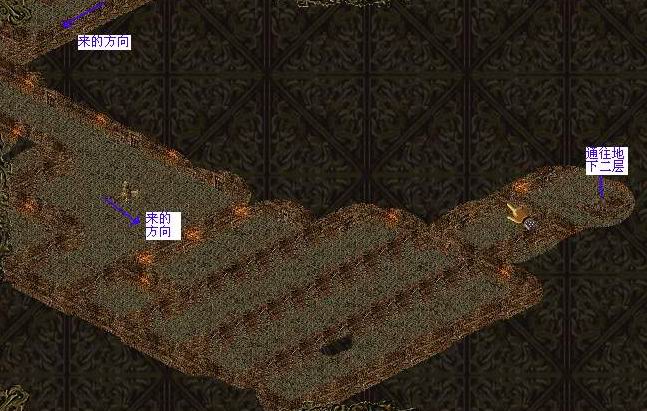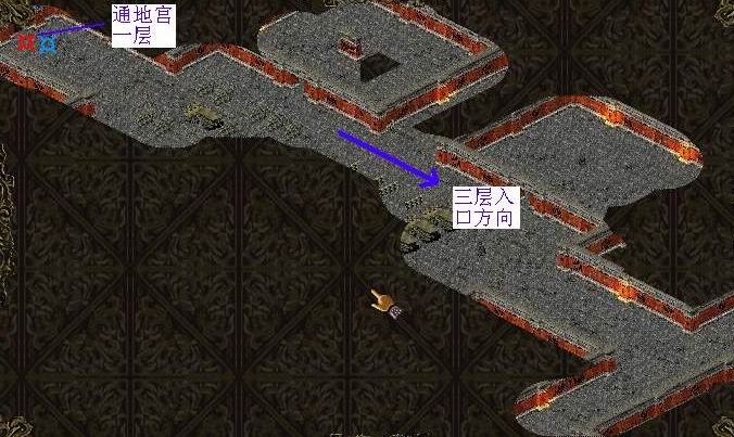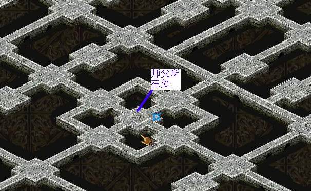 来到地宫二层,在下图中所在的位置会看到师父(可怜巴巴地)站着。地图比较大,如图: