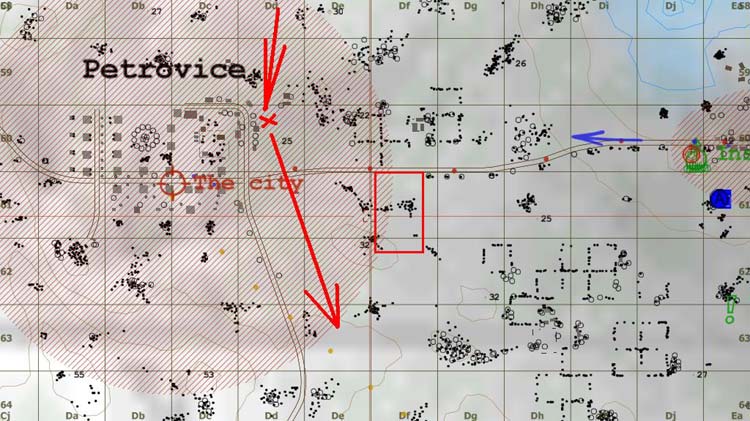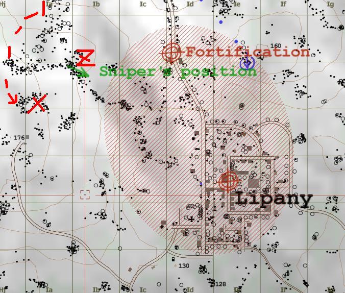按任务说明打会有些难度,大家可参考以下方法打,在分配武器时将狙击枪和PK都要用了,AT士兵的枪用AUG,多带弹夹而RPG带上个一二发就足够了,你自己用M21带上两枚RPG。如果前面按照我所讲得玩,进入游戏你会有一辆T-80、两辆T-72、两辆T-55和一辆BMP,先不要去开,按图5带着部队绕到X点,可以看到在Lipany中停着一架Mi-17用RPG轰掉它,先狙Fortification中的士兵,消灭试图上UAZ的士兵,再打3个M2重机枪手,特种兵也一个别漏,当然你的狙击手和机枪手的位置一定要好,他们会起很大的作用,当你的部队处理掉一辆BMP后(也可能是被你的装甲部队干掉),在安全的情况下转移到Z点区域,找一好位置,清完Fortification后也会有一支机枪部队来助阵,再打掉从Lipany出动的三股敌人,等差不多了回到出发点开上坦克,再呼出其他的坦克部队和特种兵,一起浩浩荡荡的开进城里。