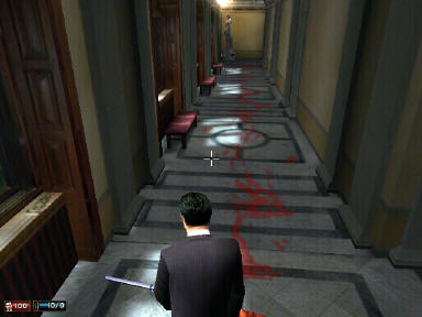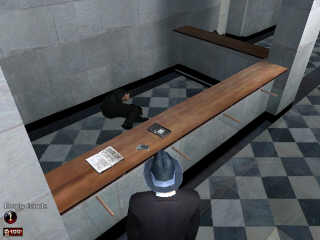 (其实还有个变态的方法可以拿到武器,在二层另外一个男厕那里等,有个议员的保镖会来这里上厕所,关上门干掉他也可以拿到武器)