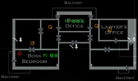 [从P1下去之前先破坏电梯监视系统(用枪打坏那台电脑),然后从P1下去干掉Charlie Sidjan。(干掉Charlie Sidjan之后会发现他有一个双胞胎兄弟,看照片上的房间,47认为Charlie Sidjan的双胞胎兄弟应该也在这个大厦内,而且认为他肯定也跟这次软件偷窃案有关。)] |