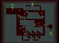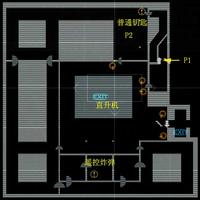 [这是3楼的地图,按响报警器之后赶快跑回原来的地方准备脱离。报警之后,Masahiro Hayamoto会坐直升机逃跑,通过地图可以知道他当前的位置,当他跑到直升机那里的时候就按下遥控引爆器,然后脱离就结束了。] |