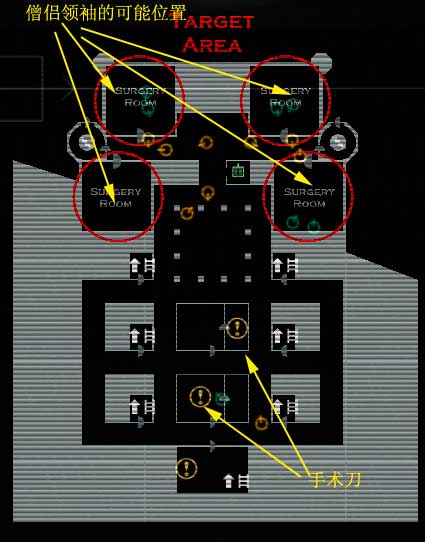 [这关的任务是干掉在医院准备做心脏手术的僧侣领袖。换上僧侣的衣服就可以大摇大摆地进入医院了。] |