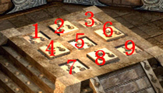 机括之间·阴:进去后看见的是3、4、5、6、7为突起,因此破解顺序为:6—4—1—9—5