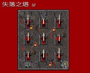 失落之塔5F:死神骑士在这里开始出现,在这里练级速度很快,且能获得不错的装备和宝石。
