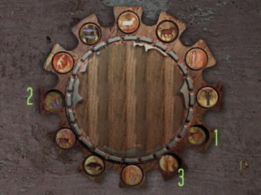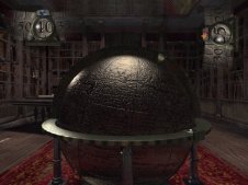 Look and open the little oval panel and place the gem in it that you got from the trunk. Go back up the ladder and click on that ball that wouldn't stay open before. A light will be directed toward the big carved wooden desk. Go there and click on the look cursor in the center of the desk. The middle panel will open showing many pictures (the Brotherhood of the Dragon). Back out of that close up and look just below at the roll top part of the desk above the red blotter. Open that roll top panel and pick up the plaque, the medal of the dragon, the key and the cross in the circle. Now it is time to see Dorko!