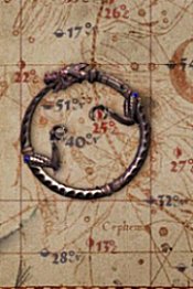 Go to the writing table and move the miniature globe. Use the ring on the map and move it so that the feet of the dragon ring circle 40N. and 25 E. Note those numbers and the color blue for North and red for East.